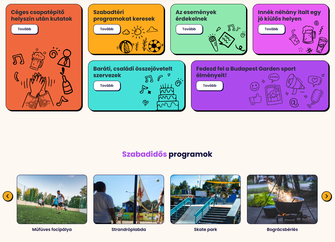 B2B focused sections also had to be created for services typically requested by companies, such as teambuilding events.